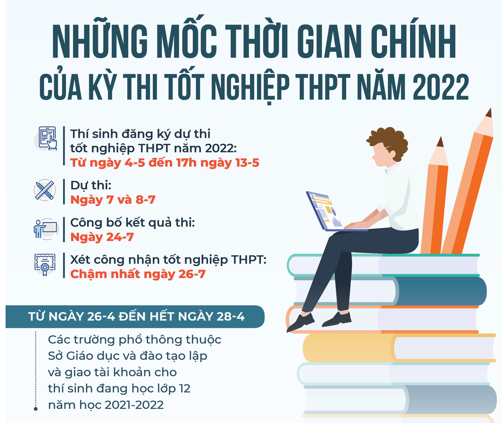 Như vậy, Kỳ thi tốt nghiệp THPT năm 2022 sẽ được tổ chức vào ngày 07/7 và ngày 08/7/2022.